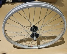 used 20" 36 spoke GT unsealed Mohawk front wheel. Bought this for a project that I'm not longer doing. Wheel spins pretty straight, I haven't done anything to it. Was gonna repack the bearings, but didn't since I'm not doing this project anymore. Does have some scratches on the rim, hopefully you can see them in the pics Any questions, please ask. I do my best to ship within 1 business day