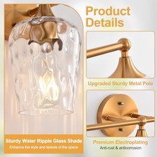 20 inch Vanity Light,Modern Wall Sconce with Rippled Glass 3-Light Gold