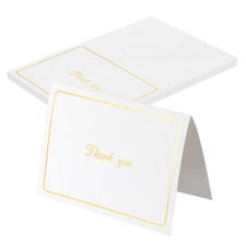 What is this?These place cards are designed for elegant gifts or table settings at various events, such as thank-you dinner, postcards, thank-you cards, gift cards, bouquet cards, greeting cards, Mother's Day cards, etc..What will I get?Size: 14x9.5cm/5.6x3.8inch (L*W)Style: White Gold Line Frame and "Thank You" wordsIn the package of: 20 Pcs x place cardsIs there any advantages of the product?Our white gold line frame foldable place card has an elegant appearance with well-printed blessing words. If you are not good at expressing your feelings, it can perfectly replace you; If you want to write it yourself, it also leaves ample space for you to write. They can stand on the table as long as they are folded along the scratch. The large blank provides sufficient space to write the guest's name and the table number.
