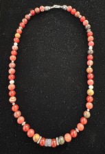 Red Carnelian, Orange Agate, & Picasso Jasper Gemstone Necklacewith silver plate lobster clasp. 20" Gemstone Necklace.