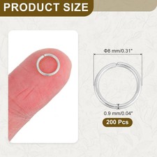 200 Pcs Open Jump Rings, 8mm Split Metal Ring 0.9mm Thick Connect, Mute Silver