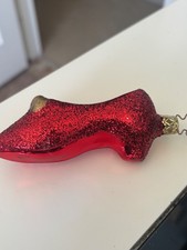 2001 Old World Christmas Wizard Of Oz Ruby Slipper Glass Ornament 4"