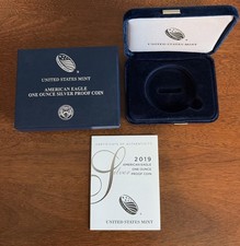 2019 Proof $1 American Silver Eagle Box & COA | No Coin