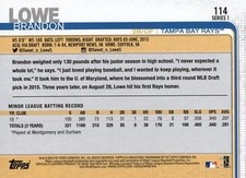 This is a nice example of a 2019 Topps #114 Brandon Lowe Other important information about this card: RC In 2019 Brandon Lowe played for the Tampa Bay Rays. Please check out our other listings for more great cards.