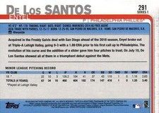 This is a nice example of a 2019 Topps #291 Enyel De Los Santos Other important information about this card: RC In 2019 Enyel De Los Santos played for the Philadelphia Phillies. Please check out our other listings for more great cards.