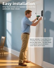 Up to 140LB can be pushed. Automatic door closer cloggers can always help you close the door, effectively keeping flies, mice or pets away. Easy to Install - The automatic door closer is very easy to install, we are equipped with all the installation parts and have professional English installation instructions to make your installer easier.