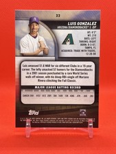 This is a nice example of a 2025 Stadium Club #22 Luis Gonzalez Other important information about this card: In 2025 Luis Gonzalez played for the Arizona Diamondbacks. Please check out our other listings for more great cards.