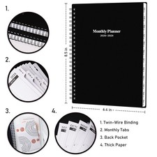 Style: Monthly Planner 2026-2028. Monthly Pages Overview - 2026-2028 Monthly planner full with ruled daily blocks (1.18" x 1.26" ) for open scheduling, notes section for priorities. In addition, this monthly planner 2026-2028 contains 3-month reference calendars for you to review the past months and looking forward to the future months.