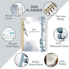 2026 Appointment Book - 2026 Daily Hourly Planner from 5.8" x 8.5", Blue-Leaf