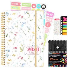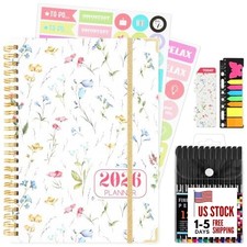 2026 Planner, Daily Weekly Monthly Planner with Tabs, 2026 monthly planner with Color Pen, Sticky Notes and Stickers, 6.2" x 8.5", Durable Twin Wire Binding, Storage Pocket - Floral Multicolor. Durable & Stylish Planner: Durable hardcover with 4 corner protectors make this 2026 planner durable and to protect the inner pages better.