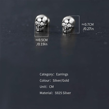 20G Skull CZ S925 Sterling Silver Gold Plated Halloween Small Stud Earrings for