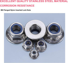 20Pcs M6 X 1.0Mm Flanged Hex Nylon Inserted Lock Nuts, 304 Stainless Steel 18-8/
