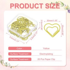 Questo Set Di Fermagli Di Metallo A Forma Di Cuore È Progettato Per Migliorare L'Organizzazione E Lo Stile. Ideali Per Uffici O Case, I Fermagli Aggiungono Un Tocco Decorativo Mentre Fissano In Modo Sicuro Documenti, Lavori Artigianali O Foto. Usali Come Segnalibri, Decorazioni Per Album O Abbellimenti Per Regali Per Un Fascino Versatile.Specifiche:Colore: Giallo;Materiale: Metallo; Superficiale: Rivestimento In Plastica;Forma Dei Fermagli: Cuore;Dimensioni Dei Fermagli: 25 X 30mm / 0.98 X 1.18 Pollice (L*P);Dimensioni Della Scatola: 5.5 X 5.5 X 2.5cm / 2.17 X 2.17 X 0.98 Pollice (L*P*A);Lista Di Imballaggio: 20 X Fermaglio, 1 X Scatola Di PlasticaVantaggi:Realizzati In Metallo Con Un Rivestimento, Questi Fermagli Resistono Alla Ruggine, Garantendo Un Utilizzo A Lungo Termine.