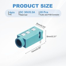 20Pcs Stereo Jack Socket, 1/8" 3.5mm 4 Pin PJ-320A PCB Mount Female,Green