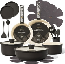 21-Piece Ceramic Cookware Set, Nonstick Pots and Pans Set with Detachable Handle