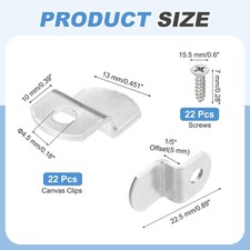 22Pcs 1/5" Offset Canvas Clips with Holes Include 22 Screws, Silver Tone