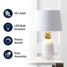 23" White/Gold Pineapple Ceramic Table Lamp for Bedroom Decor, Modern Whimsical Bedside Nightstand Lamp with White Linen Drum Shade and LED Bulb (JYL4019C). For a dose of fun and whimsy, try this ceramic pineapple lamp perched upon an acrylic base.