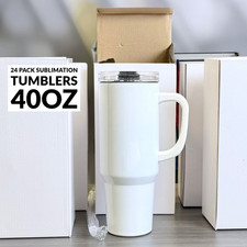 24 Pack 40oz Sublimation Tumblers w/ Handle & Straw – Bulk Liquidation