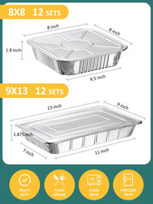24 Pack Disposable Aluminum Pans with Lids Combo Set- 12 Large 9X13 Foil Pans Ha