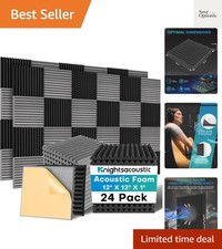 24 Pack Sound Proof Foam Panels with Self Adhesive, 12x12x1 Fire Resistant Ac...