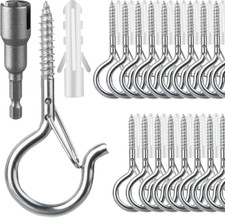 24 PCS Q-Hanger Hooks, Screw Hooks for Outdoor String Lights, Safety Buckle Design Cup Eye Hook for Hanging Christmas Lights, Plants, Mounted on Wall Ceiling, Include 1 Wing Nut Driver, Silver. Q-Shaped Buckle Design - Not like the ordinary string light hooks outdoor, the safety latch is added to prevent hanging objects from falling or sliding out even with Vertical installation.