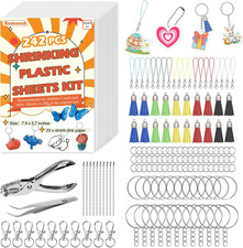 242PCS Shrink Dink Keychain Kit - Shrink Plastic Sheets with 20Pcs Shrink Paper