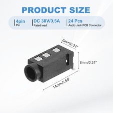 24Pcs Stereo Jack Socket, 1/8" 3.5mm 4 Pin PJ-320D PCB Mount Female,Black