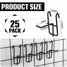 25 PCS 2 Inch Grid Wall Hooks Gridwall Panel Storage Organizer Hangers Black