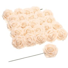25 Pcs Light Champagne Artificial Flowers Rose Box for DIY Wedding Bouquet