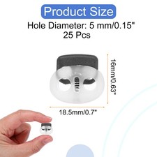 25 Pcs Plastic Spring Cord Lock, Double Hole Stopper, Transparent + Black