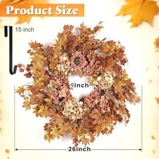 26 Inch Artificial Dried Hydrangea Wreath, Fall Colour Hydrangea/Maple Leaf additional preview