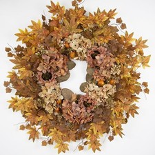 26 Inch Artificial Dried Hydrangea Wreath, Fall Colour Hydrangea/Maple Leaf