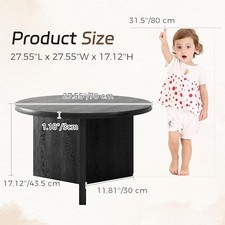 27.5" Round Black Coffee Table, Modern Wood Grain Center Table with Triangle