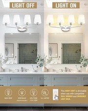 The brushed nickel finish and crisp white fabric shades create a stunning balance of classic elegance and modern simplicity, making this bathroom sconces a beautiful focal point in any room. [Wide Application] Softly diffused light through premium white shades creates a warm, inviting glow—ideal for bathroom mirrors, powder rooms, bedrooms, hallways, or entryways.