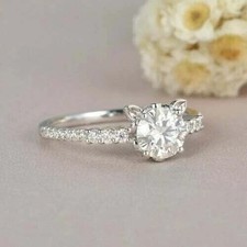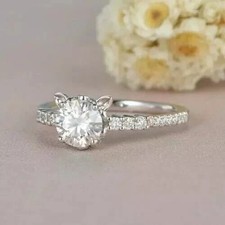 2Ct Round Cut Lab-Created Diamond Cat Engagement Ring 14K White Gold Plated