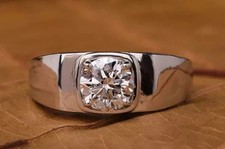 2Ct Round Cut Lab Created Diamond Men's Engagement Ring 14K White Gold Plated