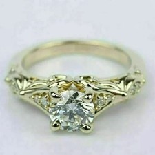 2Ct Round Cut Lab Created Diamond Women's Engagement 14K Yellow Gold Finish Ring