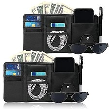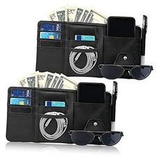 2Pcs Car Sun Visor Organizer, Auto Interior Accessories Pocket Organizer Car Visor Storage Pouch Holder with Zipper Pocket for Sedan, Truck, SUV - Black. Keep your car clean and organized. Not Obstruct Your View: This car visor pockets design with 2 strong and tight elastic bands ont the back, which can be securely attached to the sun visor without sagging and loosening in the middle, you can be more comfortable and focused on driving.