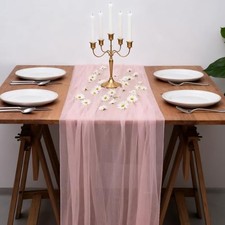2PCS Pink Cheesecloth Table Runner 120 Inch 10 FT Blush Rustic Gauze Table