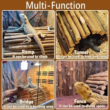 【Wide Use】Size:7.5" × 13.4"(L×W). Perfect Hideout For Your Reptiles. You can bend the bridge into any shape you want. The wooden fence is flexible and easy to use. It Can Be Used As A Tunnel, Bridge, Or Ramp.