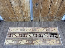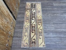 2x5 Beige Brown Vintage Turkish Runner, Hand-Knotted Wool Small Hallway Runner