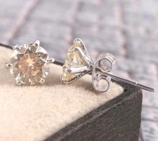Diamond Color - Champagne. This diamond Stud Earring is handcrafted with utmost care. The diamond has excellent cut and luster. Colored Diamonds are not found in the state as they are sold. They are made from earth mined rough rock found in mines of Brazil.