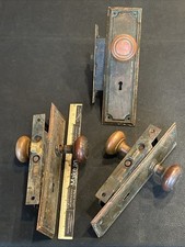 3 Antique Brass Door Knobs Keyhole Plates Corbin Mortise Locks Passage Hardware
