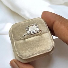 3 Ct Emerald Cut Moissanite Bezel Set Solitaire Engagement Ring 14k White Gold