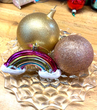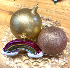 3 Glitter & Rainbow Multicolor Textured Ball Plastic Christmas Ornaments