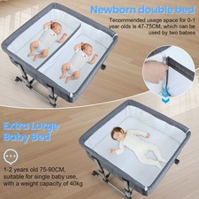 Stable and Safe: Made of premium aluminum alloy, the twin bassinet lightweight and stable. With a maximum load of 88lbs, you don't need to worry about baby's safety. The skin friendly fabric and soft mattress provide a comfortable sleeping experience for babies.