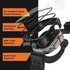 3 in 1 Waterproof Case with Band for Apple Watch with Built-in Tempered Glass Screen Protector 49mm, 360° Shockproof Bumper Face Cover with Band for Apple Watch Ultra 3/Ultra 2/Ultra, 49mm. Compatible with Apple Watch models: 49mm, 46mm, 45mm, 44mm, 42mm, 41mm, 40mm.