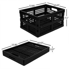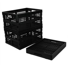 Includes 3 black folding storage crate. Made of durable plastic. Easy to use and clean.