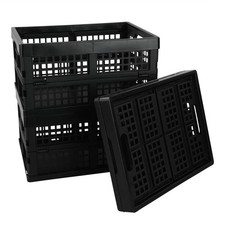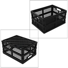 3-Pack 15 L Plastic Folding Storage Baskets, Collapsible Storage Crates, Black additional preview