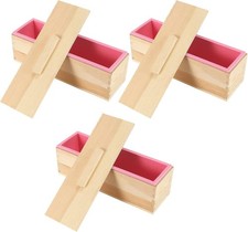 3 Pack 42oz Rectangular Flexible Silicone Soap Loaf Mold with Wooden Box